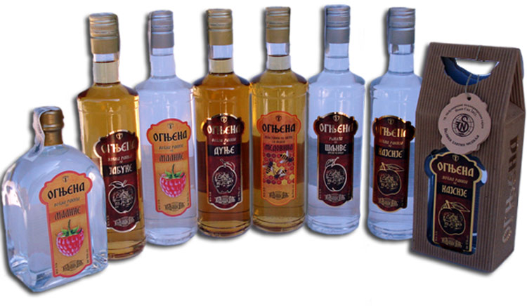 - Ракије од шљиве, дуње, кајсије, јабуке, малине, виљамовке и дивље крушке
