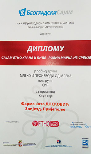 Домаћинство "Досковић" налази се у месту Звјезд, општина Пријепоље, на обронцима планине Јабука, између Србије и Црне Горе, на надморској висини од 1.000 метара. Више од 20 година, дружимо се, међусобно помажемо и делимо наш животни простор са козама расе "Алпине". За њихово добро здравље и одличан квалитет млека које нам козе дарују, заслужна је нетакнута природа, бели камен и обиље трава и растиња којима обилују ови предели. Често се говори како „у укусу наших сирева можете да осетите ветрове са Дурмитора, Бјеласице, Златибора и Златара“. И баш ту, на пашњацима на Вијенцу, Савином лакту, Ластви и Сељанима, наше козе су на испаши од марта до децембра. Током зимских месеци, козe се хране сеноm покошеним на нашим ливадама. Зато са поносом истичемо да је наш сир „пола храна, а пола лек“!